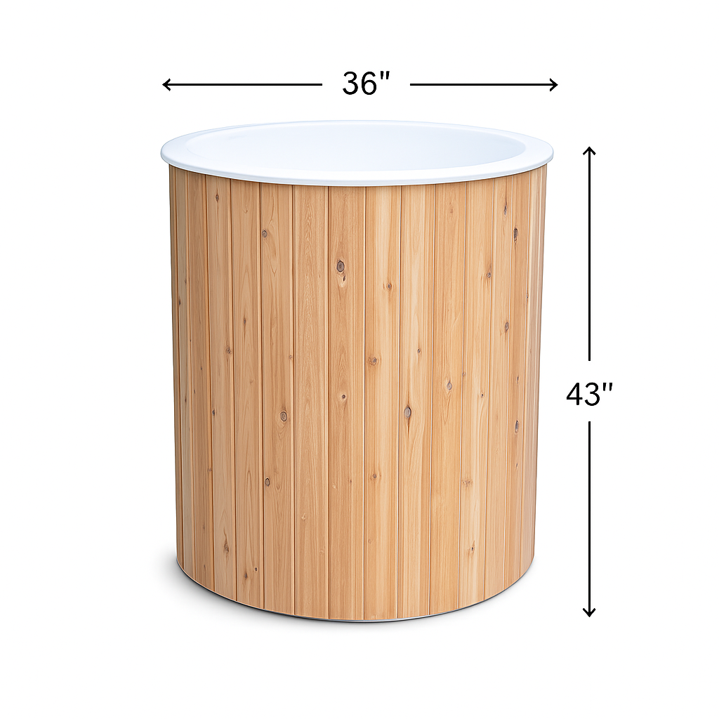 Experience the benefits of cold therapy with this premium red cedar cold plunge, designed for durability, beauty, and functionality. Standing 43 inches tall and 36 inches wide, it offers a spacious interior while maintaining a compact footprint suitable for home gyms, backyards, or wellness spaces.
