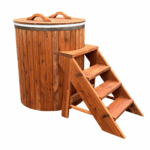 Crafted from rich red cedar, this cold plunge includes matching cedar steps for easy access and a fitted cedar lid to help retain water cleanliness and temperature. A perfect combination of natural aesthetics and performance, it’s built to elevate your wellness routine.